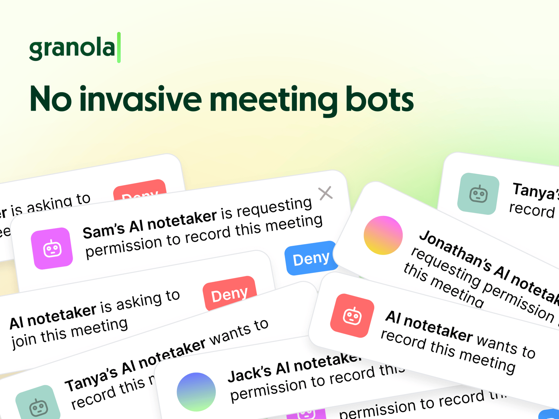 Granola transcribes directly from your device’s audio (on your computer or your phone). It works with any meeting tool: Zoom, Google Meet, Microsoft Teams and even for in-person conversations.