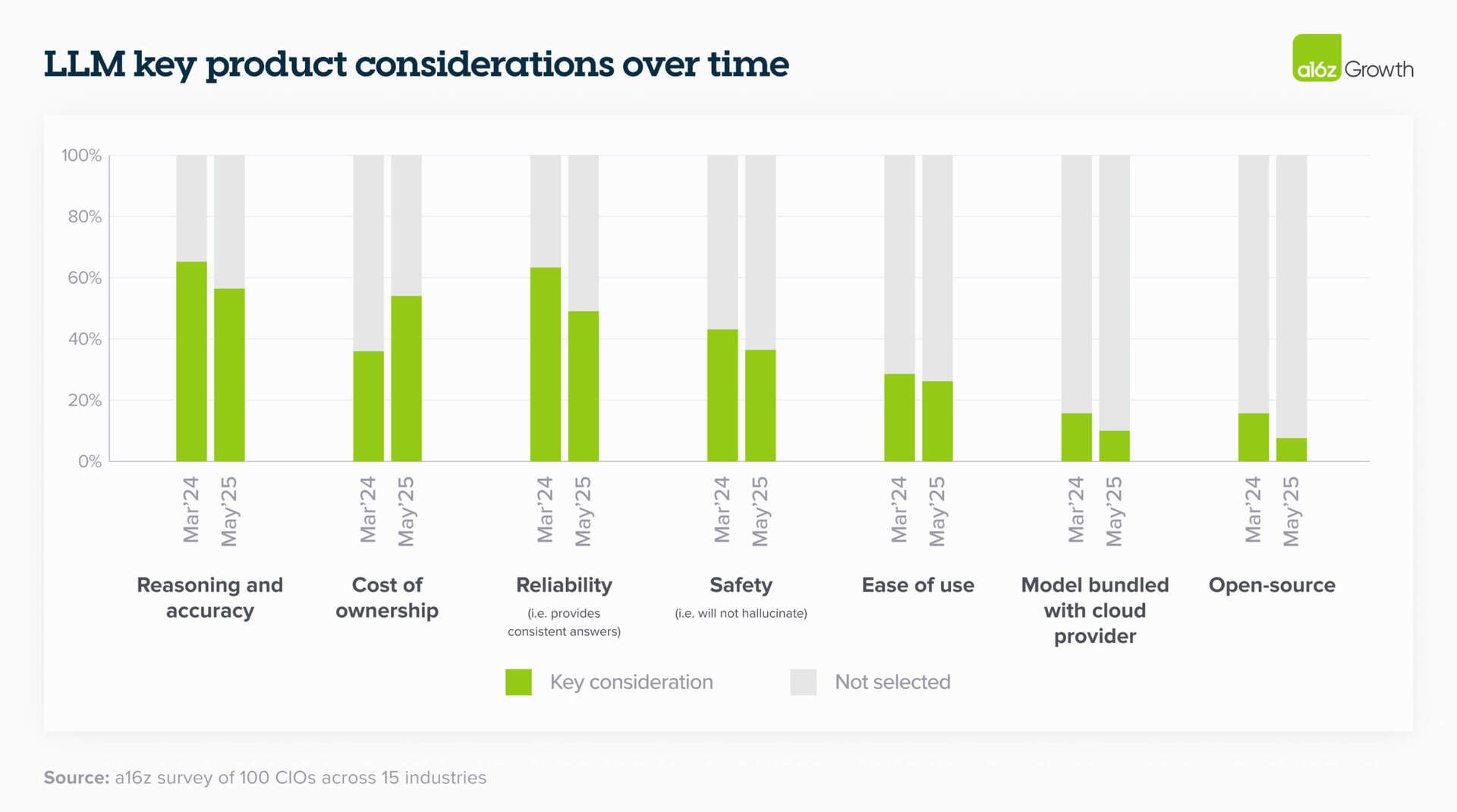 Enterprise LLM buying is shifting from model performance to cost, reliability, and ease of scaling across the business.