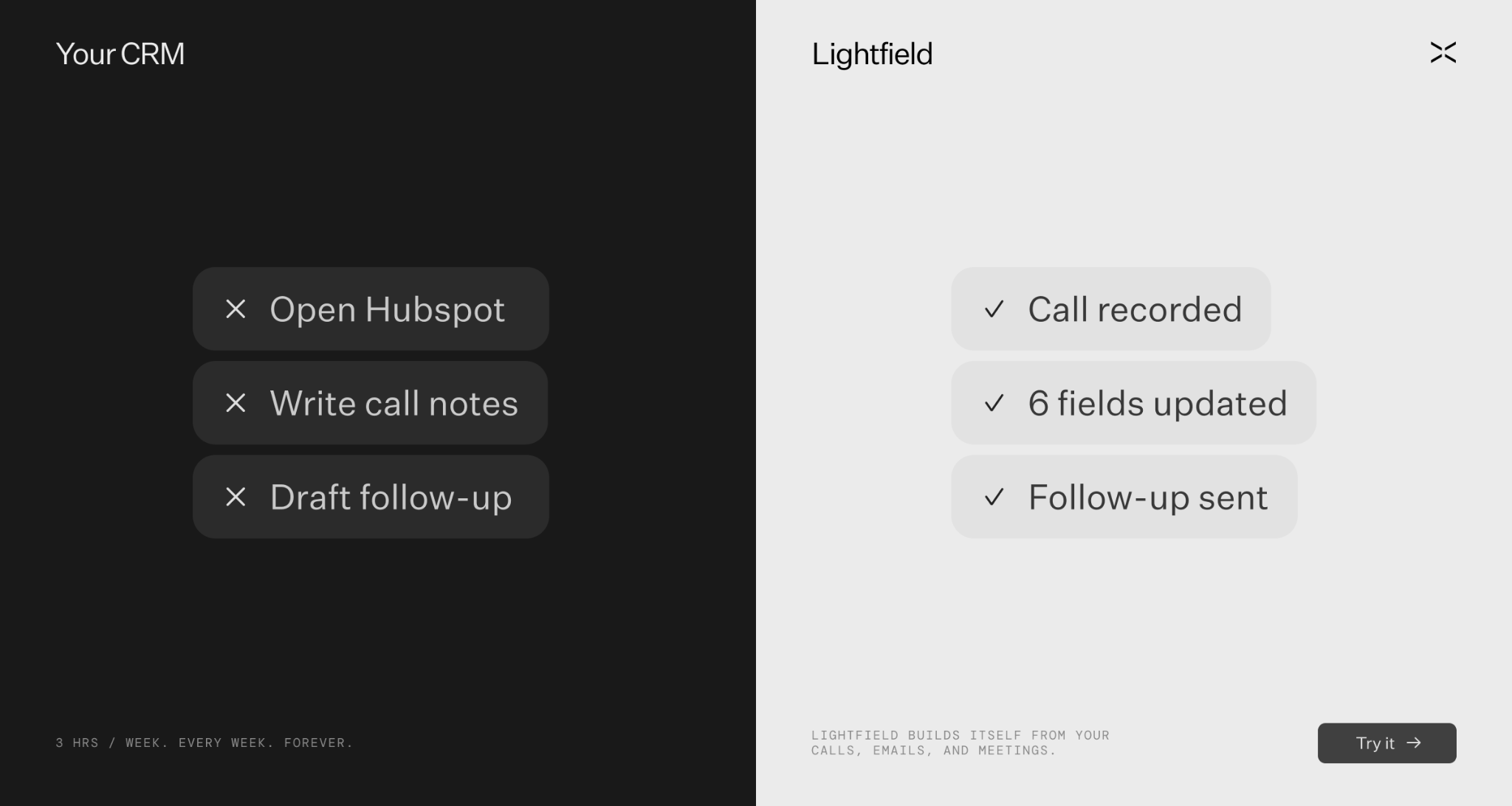 Lightfield is an AI-native CRM that captures every email, call, and meeting automatically — then lets you ask anything about your business. Real answers with citations from real conversations.
